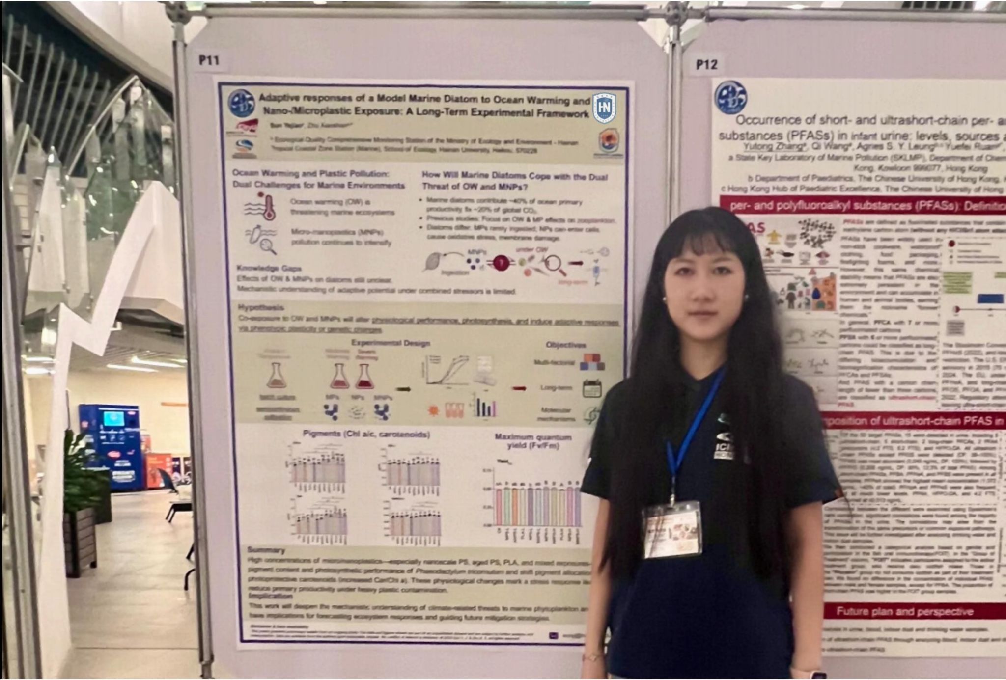 此外,2023级生态学博士研究生孙业皎同学积极参加了会前举办的“多驱动因子实验设计培训课程(Designing Multiple-Driver Experiments)”,该课程由国际知名专家Christina McGraw、Sam Dupont等5位老师讲授,聚焦多因子实验设计的原则与方法,为学生开展复杂环境胁迫研究提供了重要理论支持与技术指导。同时,会议期间孙业皎同学以学术海报形式展示了题为“Adaptive responses of a Model Marine Diatom to Ocean Warming and Nano-/Microplastic Exposure: A Long-Term Experimental Framework”的研究成果并与各国学者进行了交流。