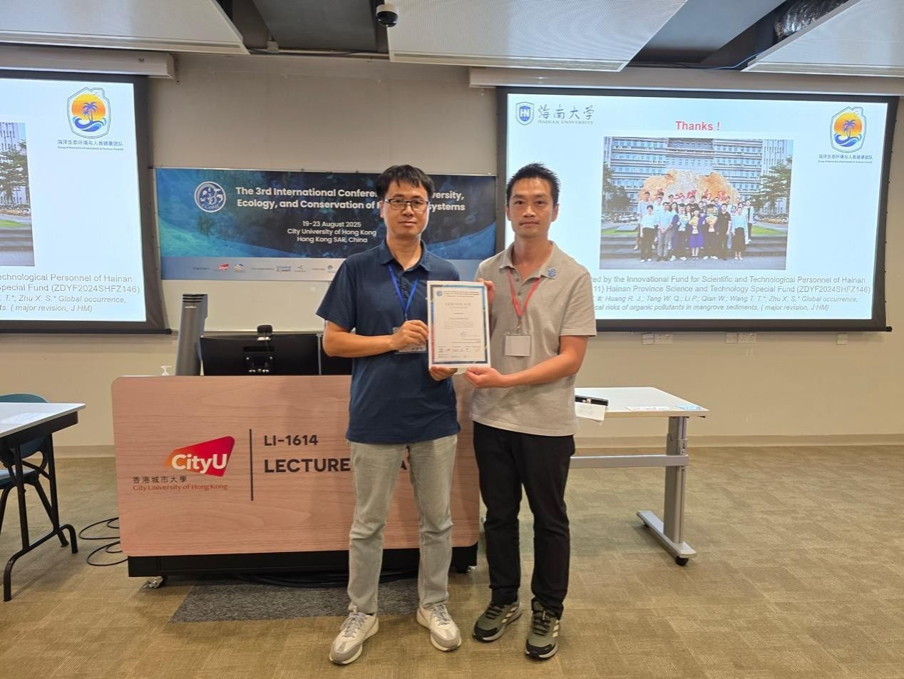 由香港城市大学和海洋环境健康全国重点实验室(SKLMEH)联合主办的第三届海洋生物多样性、生态及生态系统保育国际会议(BECoME 2025),于2025年8月19日至23日在香港城市大学成功举办。我们海洋生态环境与人类健康团队积极参与此次国际学术盛会,与国内外专家学者就相关领域前沿问题进行了深入交流,并介绍了团队在海洋生态保护研究方面的最新进展,进一步拓展了国际视野,促进了学术联系与合作。