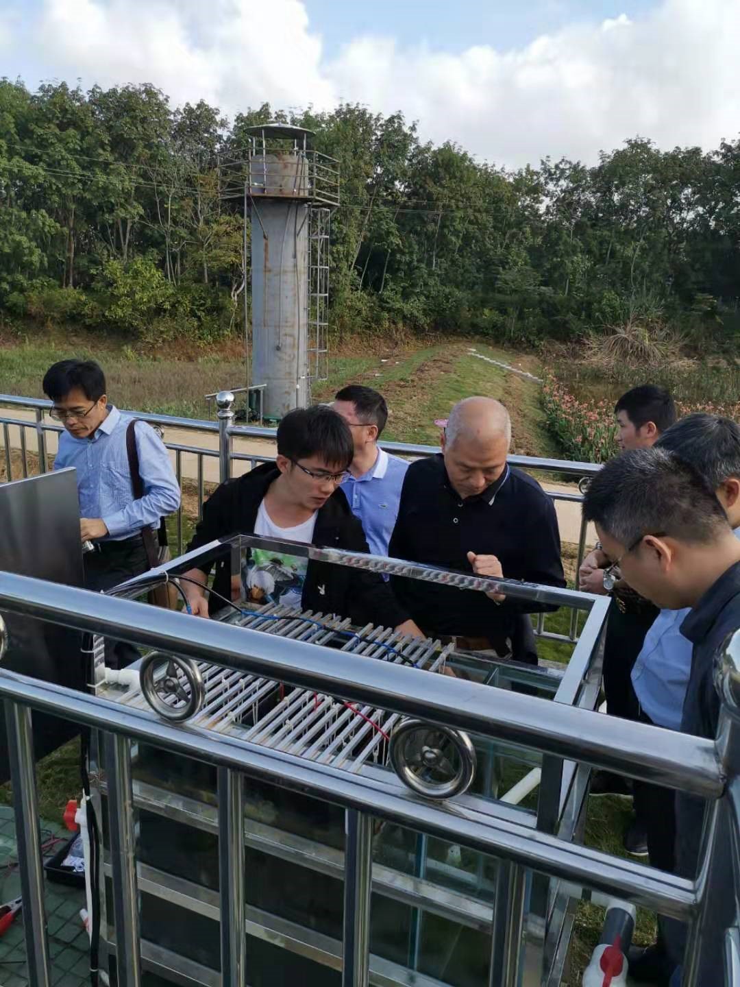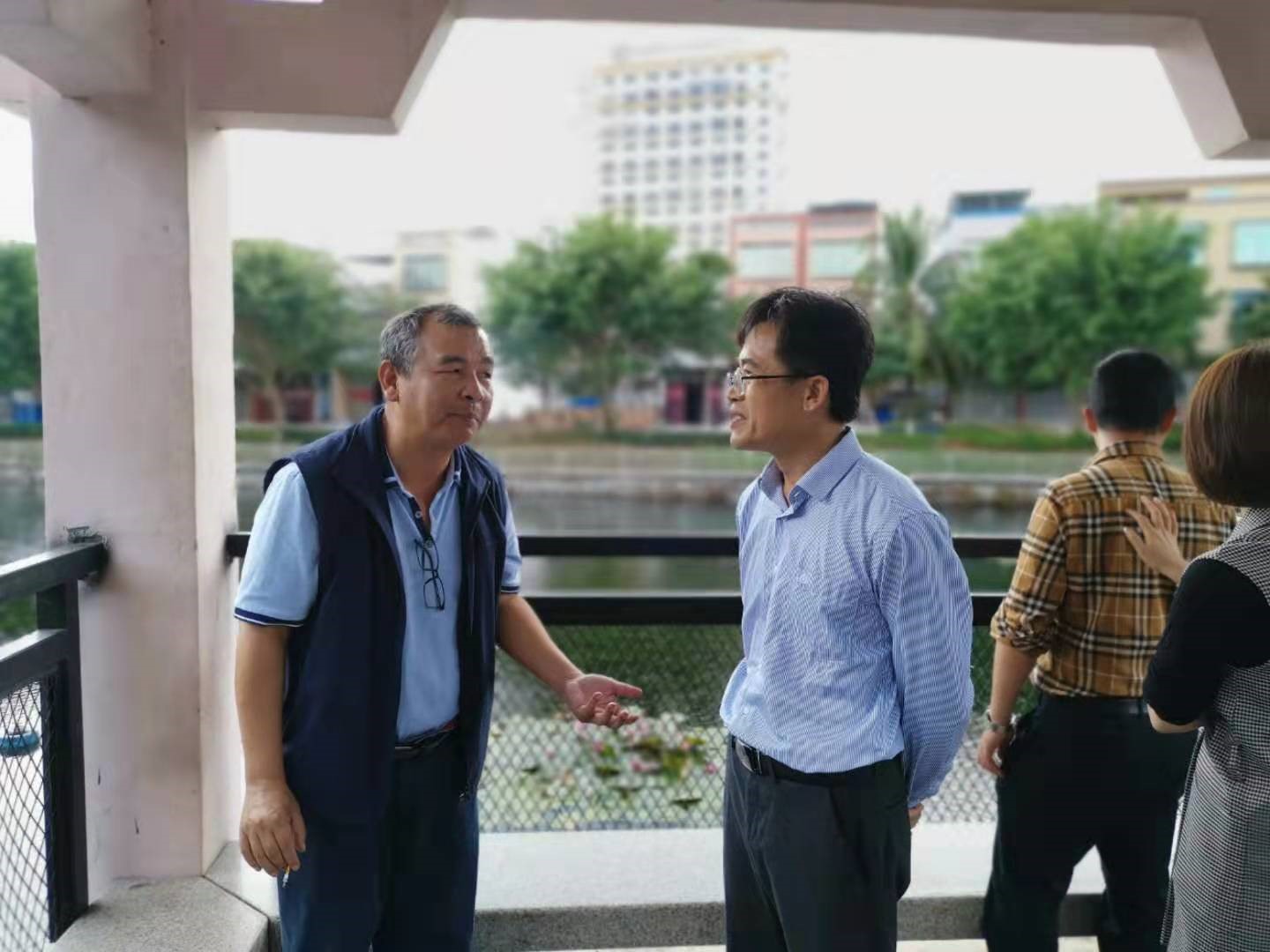 海南天鸿市政设计股份有限公司董事长柏斌、总裁余明等为黄海民书记、王旭副院长一行详细介绍了公司发展的概况与规划。还陪同参观了该公司运营的屯昌县乌坡真污水处理工程、良坡自来水厂、屯昌县街心公园水生态修复工程。