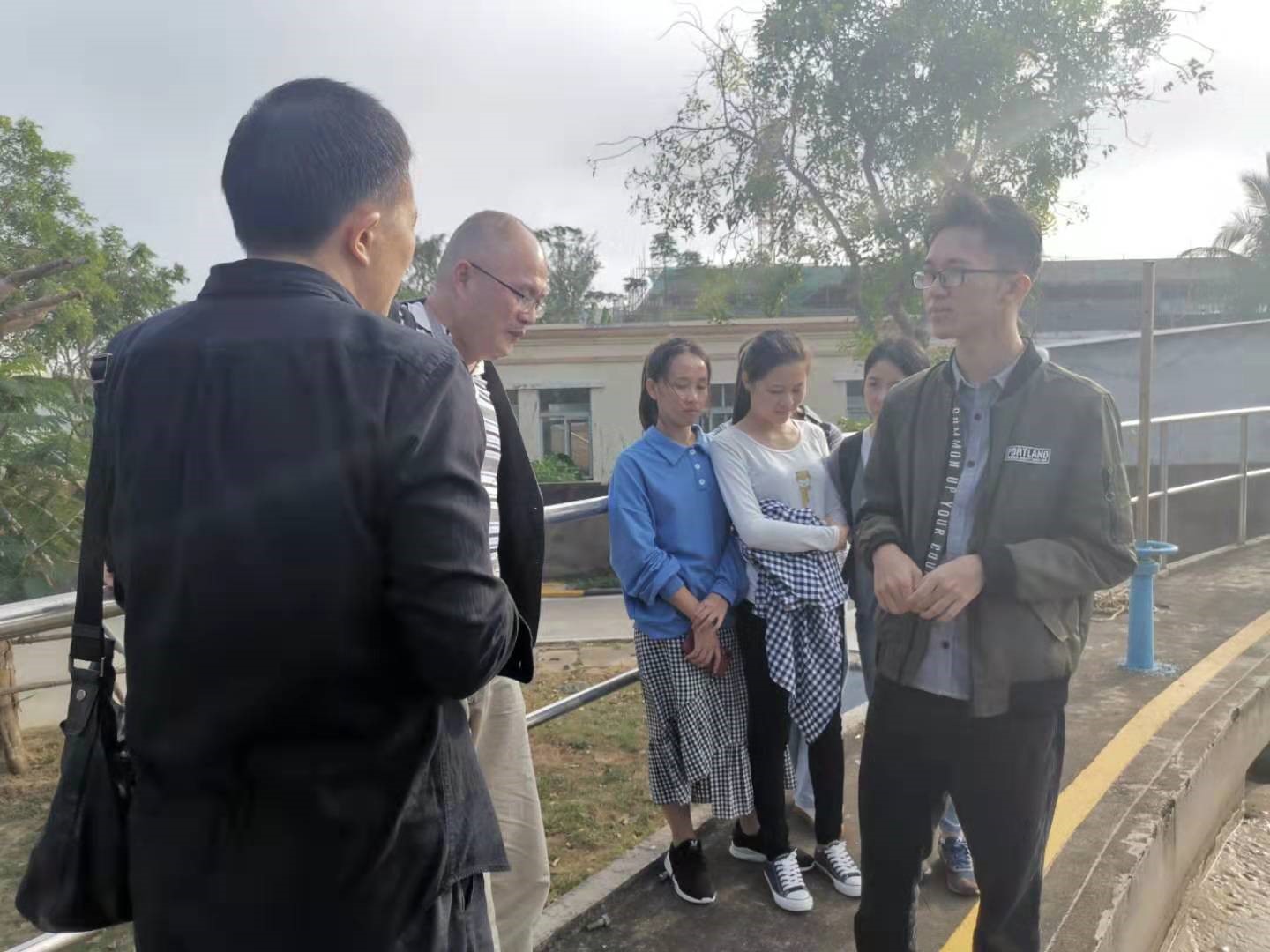 上午慰问结束后,学院领导分成两组分别前往海南省生态环境监测中心、海口市白沙门污水处理厂慰问在企实习学生。考察询问学生的实习工作情况,学生也分享了他们的实习心得和体会。