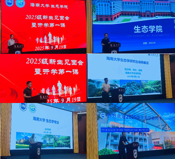 学院党总支书记林豪燕在致辞中强调生态学不仅是科学更是价值观,勉励学子将个人成长融入国家生态文明建设战略。院长胡中民介绍了学院发展历史,展示了全链条培养体系、雄厚师资及围绕热带特色生态系统的科研布局,展望了服务海南自贸港建设的使命。副院长赵洪伟与本科责任教授任明迅分别就研究生和本科生的培养进行解读,突出了国际化、实践性及科研导师制等特色。副院长孙仲益则重点介绍了学院的四大核心研究方向与科研团队。