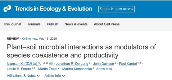 近日,76net必赢官网席念勋以第一作者兼独立通讯作者在Trends in Ecology & Evolution发表了题为“Plant-soil microbial interactions as modulators of species coexistence and productivity”的综述文章,从理论上阐明土壤微生物调节植物物种共存及多样性影响生产力的理论基础,然后据此解释不同微生物类群(专化微生物,泛化微生物)如何调节物种间的生态位和适合度差异,进而通过互补效应和选择效应影响生产力,并据此推断两类机制之间的关联。研究认为不同的土壤微生物类群对植物物种共存和多样性-生产力关系可能有截然不同的影响,具体取决于植物-土壤微生物互作的类型和专化性。此外,与植物产生对抗性关系或者互利性关系的其他类群(比如叶际微生物、传粉者、食草昆虫等)也可能通过类似的机制调节植物物种共存和生态系统功能。塔尔图大学的Marina Semchenko教授、Martin Zobel教授以及瑞典农业大学Paul Kardol教授等为本文的共同作者。